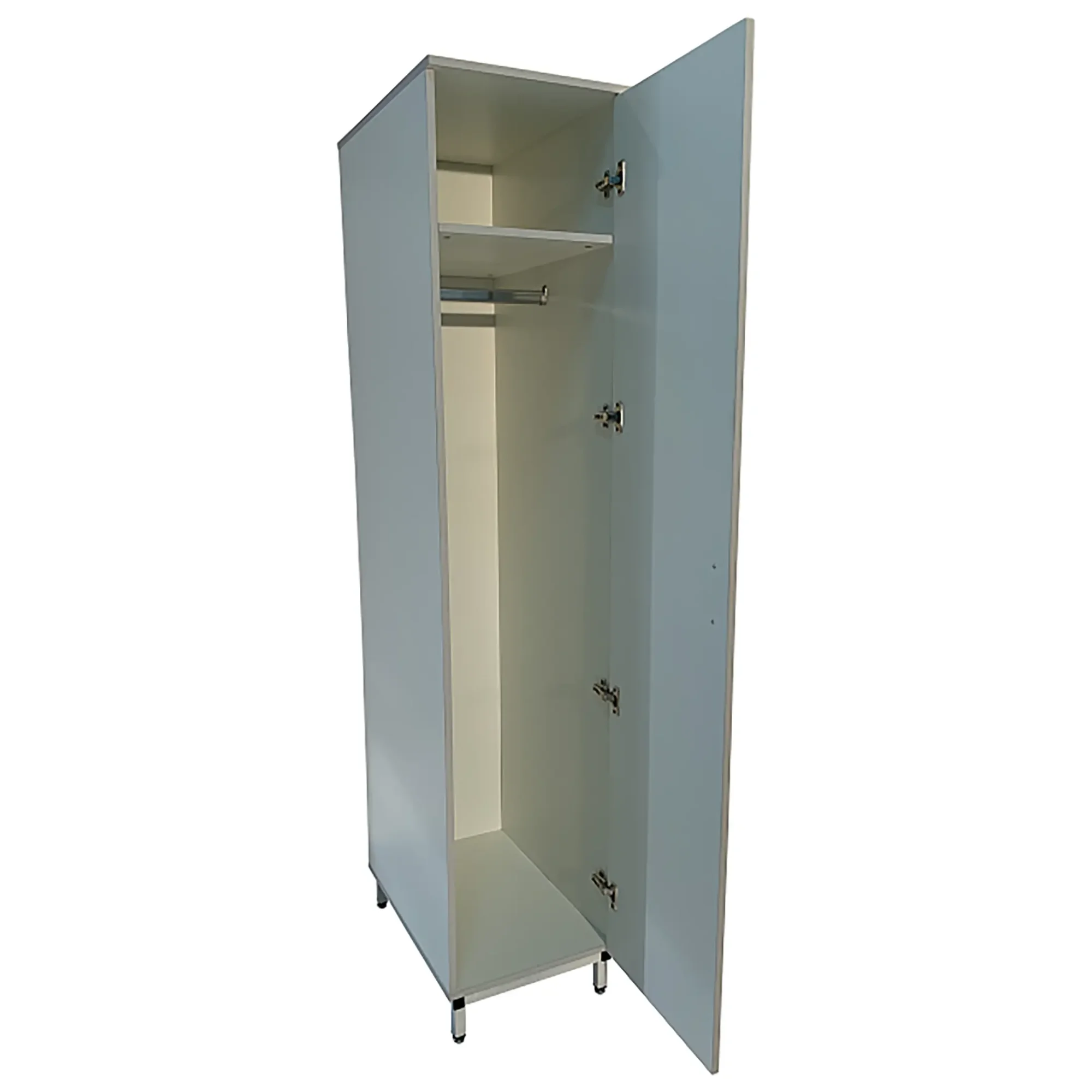 • Оснащен штангой, полкой для обуви, полкой для головных уборов, дверцей и регулируемыми по высоте ножками.