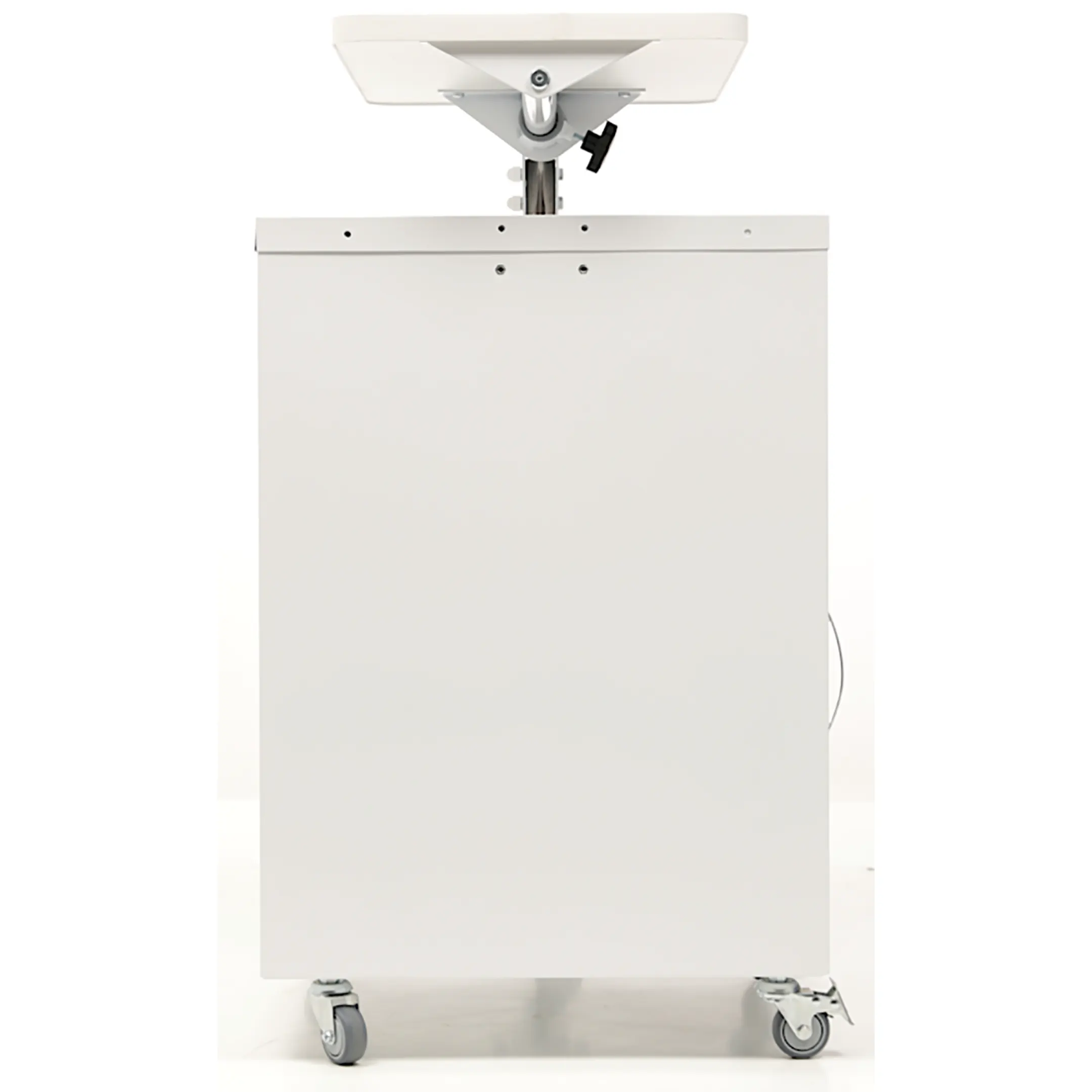 • Тумба оборудована колесными опорами из немаркой серой резины. Сбоку тумбы установлена дополнительная опора с пятым колесом с целью предотвращения опрокидывания изделия;