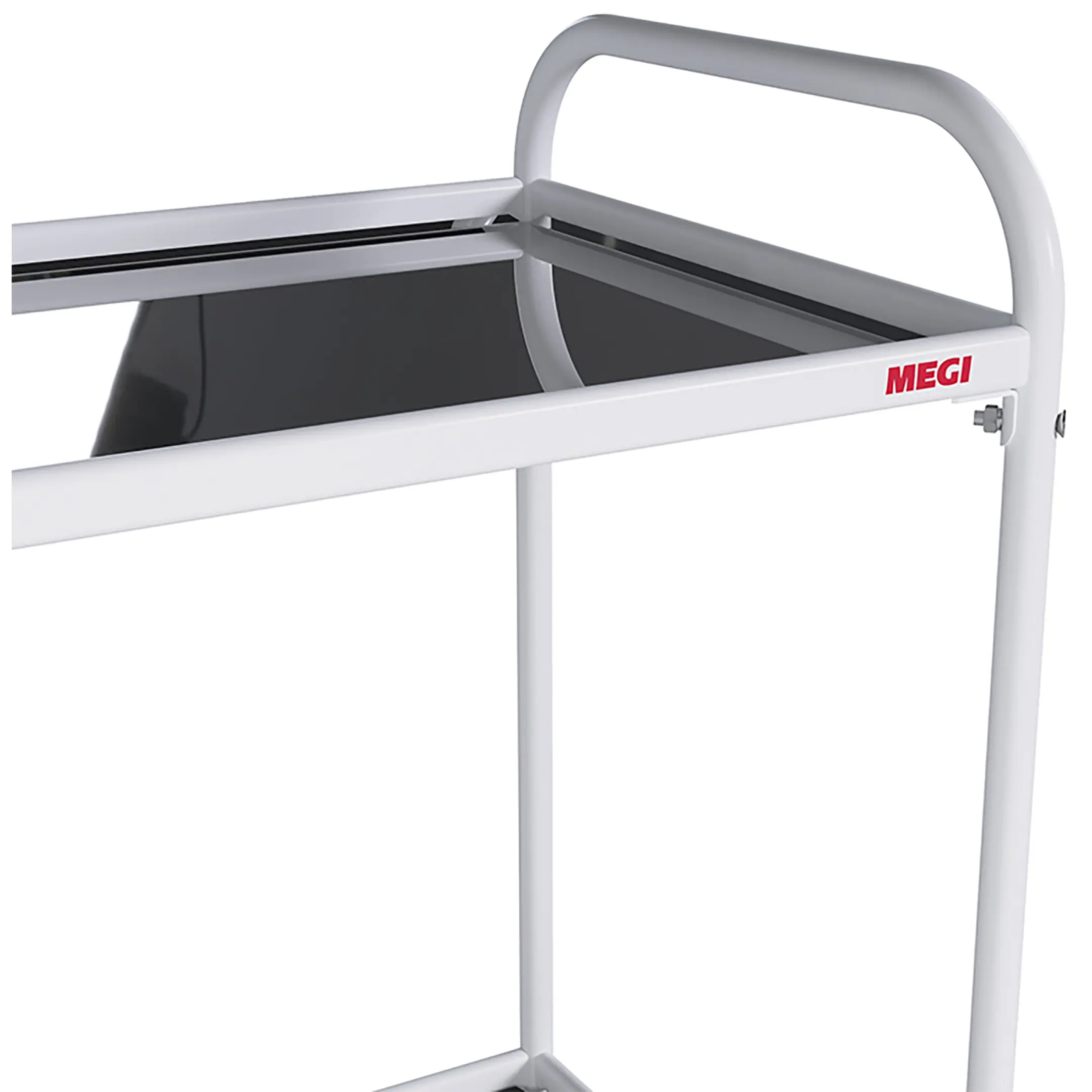• колеса поворотные, самоориентирующиеся, диаметром 50 мм, комплектуются надёжной стальной вилкой с прецизионным радиально-упорным подшипником, ободом из полипропилена и шинкой из серого полиуретана, не оставляющего следов на полу, два колеса – с индивидуальным тормозным устройством.