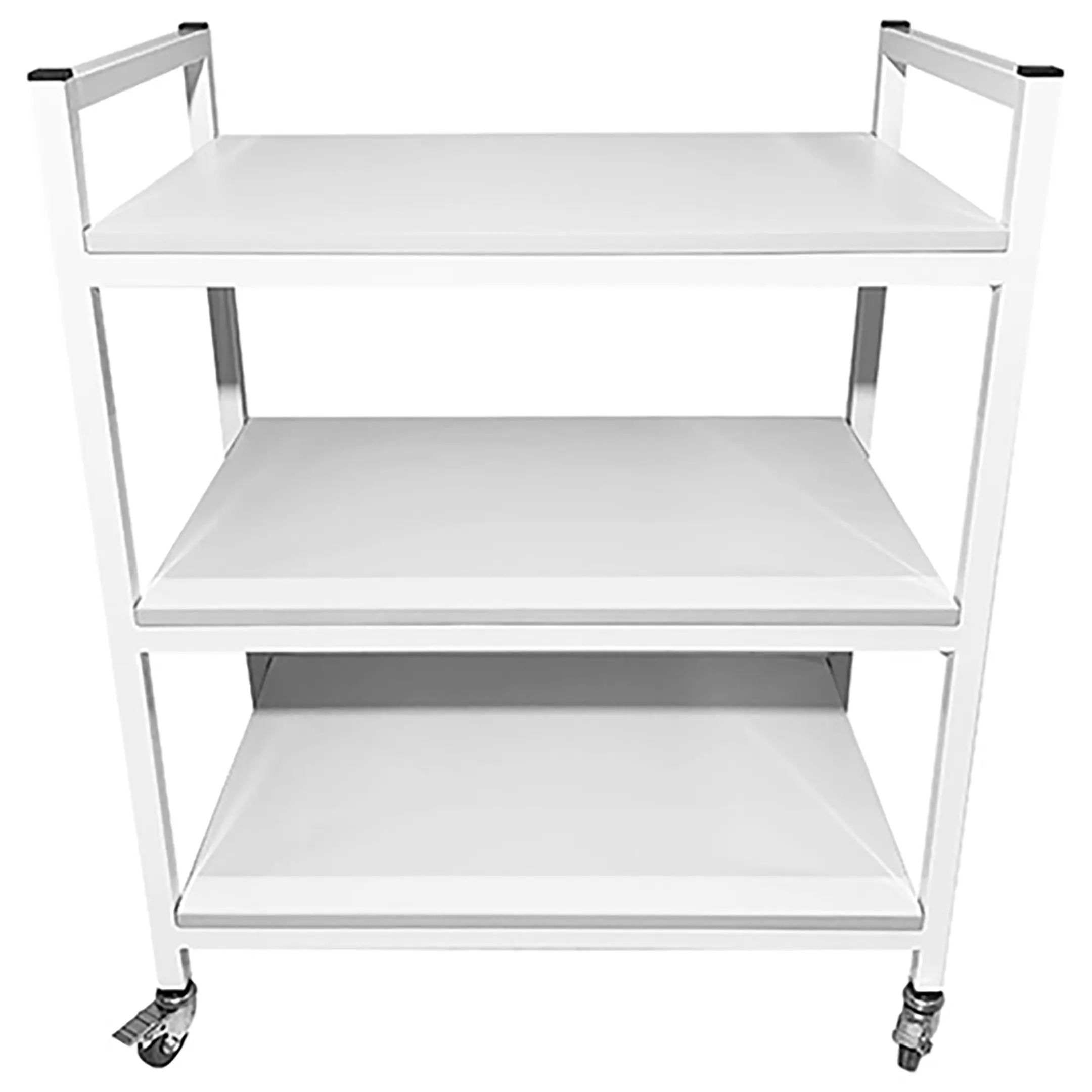 Стол лабораторный мобильный СЛм 17.005 (белый) — это функциональное и практичное оборудование, идеально подходящее для использования в медицинских учреждениях и лабораториях. Модель предназначена для временного размещения и удобного перемещения различных инструментов, предметов и приборов. Оснащена тремя полками из ЛДСП и установлена на колесные опоры. Каркас выполнен из стального профиля.