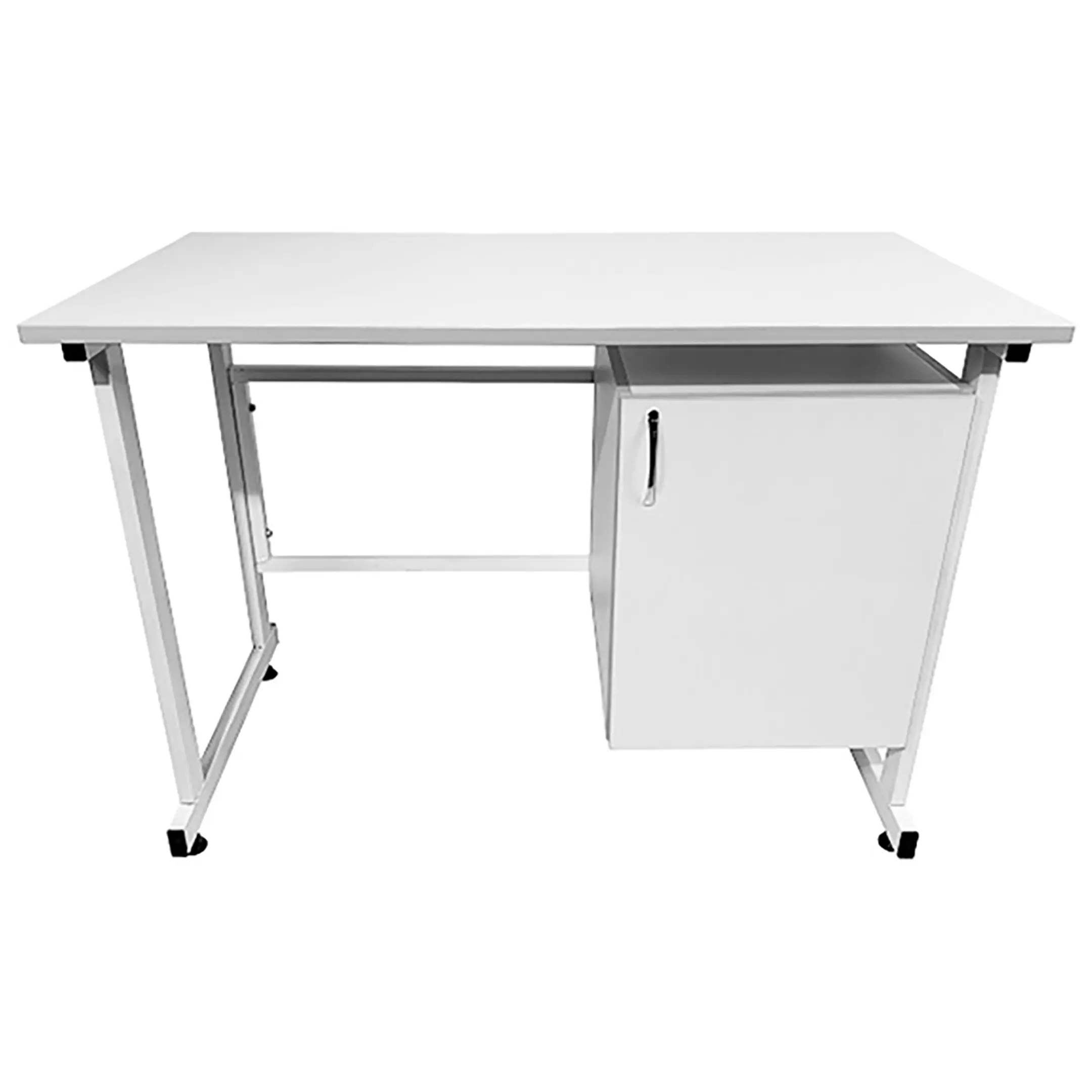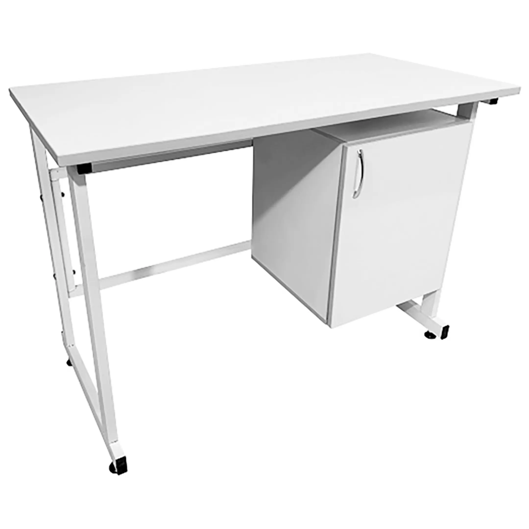 - Удобная система хранения — подвесная тумба справа с распашной дверкой и полкой для хранения материалов и инструментов.
