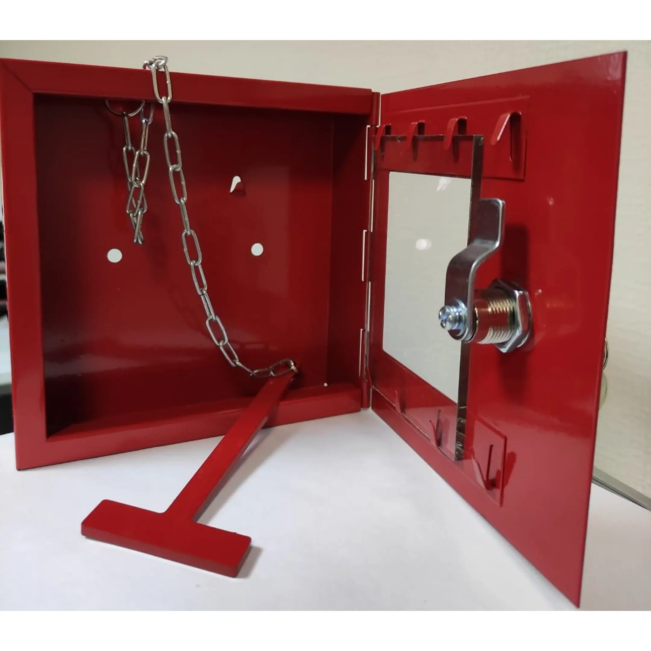 - Мгновенный доступ в чрезвычайных ситуациях — прозрачная стеклянная шторка позволяет визуально контролировать наличие ключа. Встроенный металлический молоточек обеспечивает возможность быстро разбить стекло и получить доступ к ключу в случае пожара или другой экстренной ситуации без поиска инструментов.