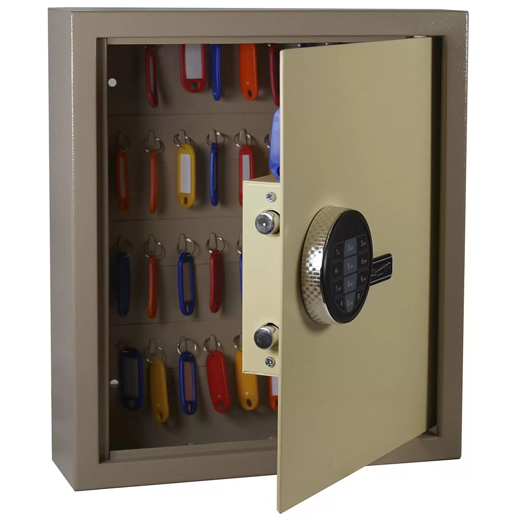 - Готовая система для точного учета и быстрого поиска — пятьдесят пронумерованных ячеек и комплект соответствующих брелков создают четкую и прозрачную систему. Это позволяет вести точный журнал учета, мгновенно находить требуемый ключ и однозначно определять ответственность сотрудников за их выдачу и возврат.