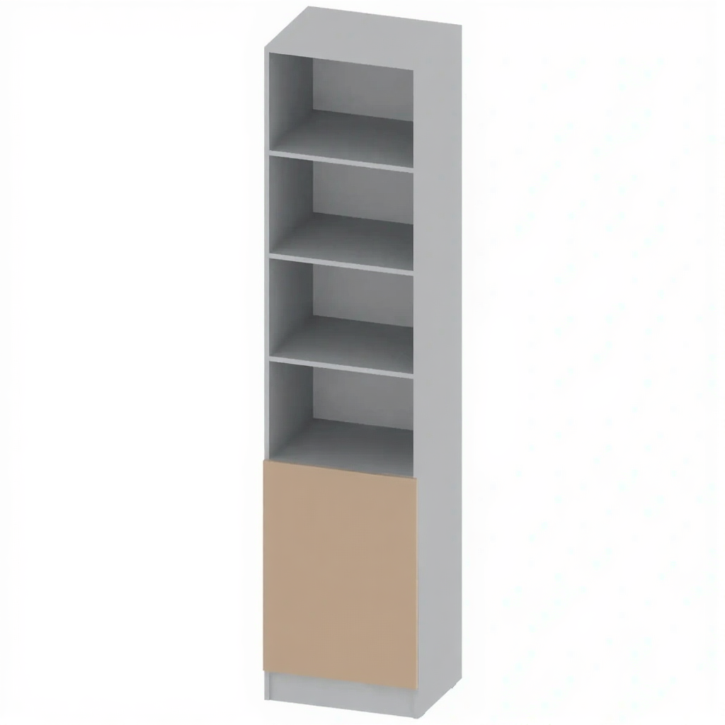 - Полуоткрытая конструкция — сочетание открытых полок для часто используемых материалов и закрытого отсека для хранения документов, требующих защиты.