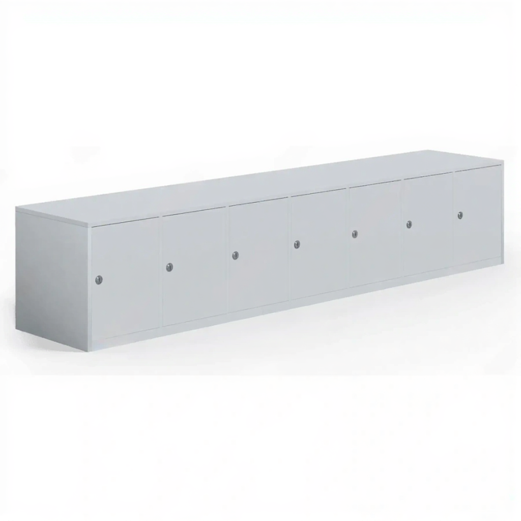 - Индивидуальные ячейки для хранения — 7 отдельных вертикальных отсеков обеспечивают личное пространство для хранения сумок, обуви, спортивной формы или рабочих принадлежностей.