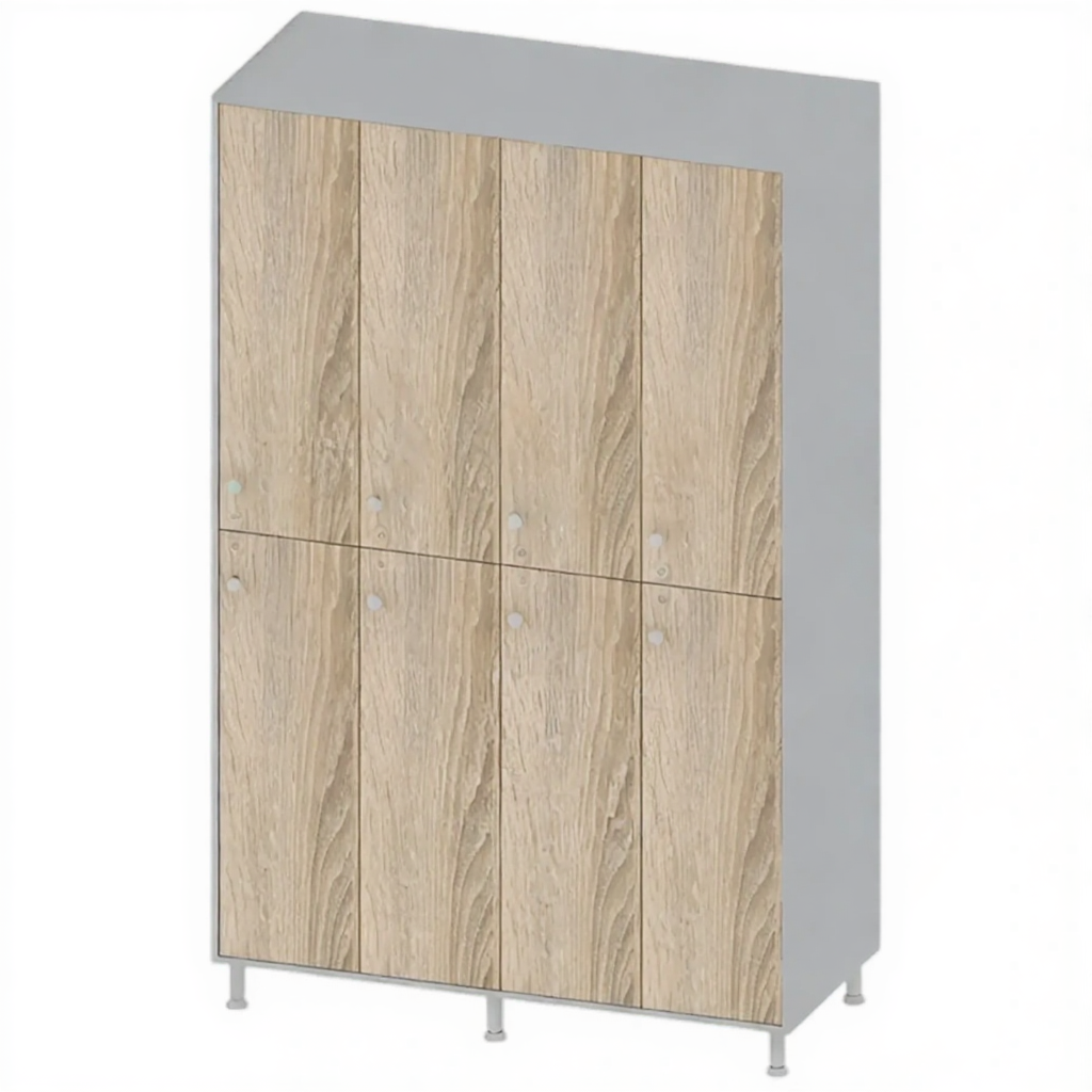 - Вместительная конструкция — 4 секции, 8 индивидуальных ячеек для хранения одежды и личных вещей.
