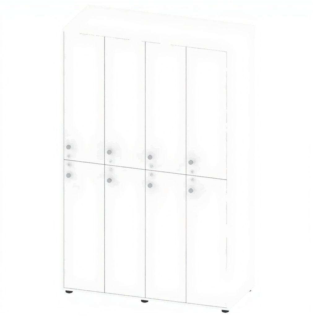 - Вместительная конструкция — 4 секции, 8 индивидуальных ячеек для хранения одежды и личных вещей.