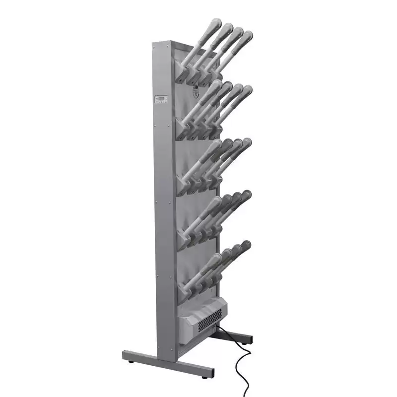 - Компактность и мобильность — комплект с подставкой представляет собой автономное решение, не требующее сложного монтажа. Его можно легко установить в любом удобном месте раздевалки, коридора или подсобного помещения и при необходимости переместить.