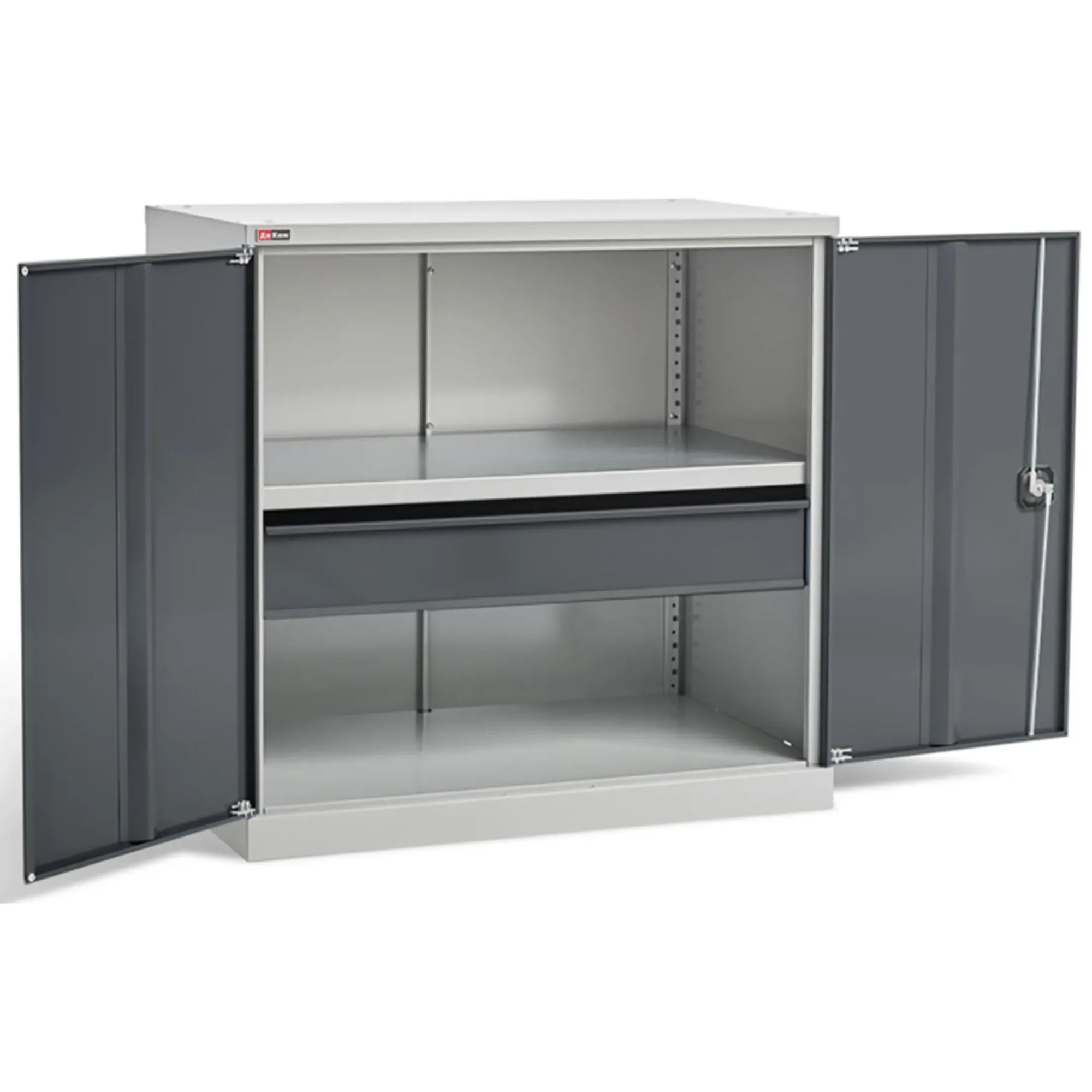 - Простая и эффективная организация — внутреннее пространство организовано с помощью одной или нескольких полок, что позволяет удобно размещать инструмент среднего размера, ящики с оснасткой или расходные материалы. Конструкция способствует поддержанию чистоты и порядка.