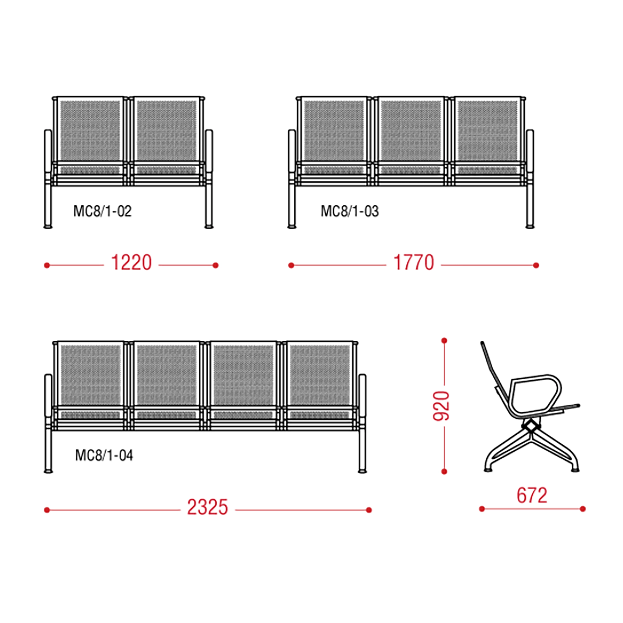 Многоместная секция предназначена для эксплуатации в зонах ожидания общественных мест с большой проходимостью: вокзалах, аэропортах, холлах административных зданий и пр.