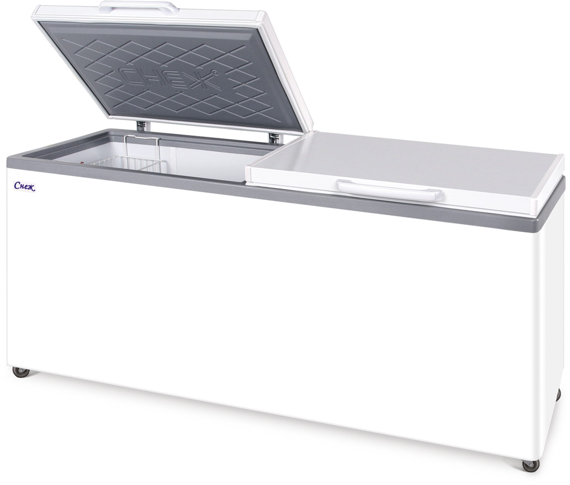 Как и все производимые нами лари с поднимающейся крышкой, морозильный ларь «Снеж» МЛК-800 по заказу может поставляться с крышками из нержавеющей стали, которые могут использоваться как рабочая поверхность для разделки, обработки продуктов, что особенно актуально для предприятий общепита.