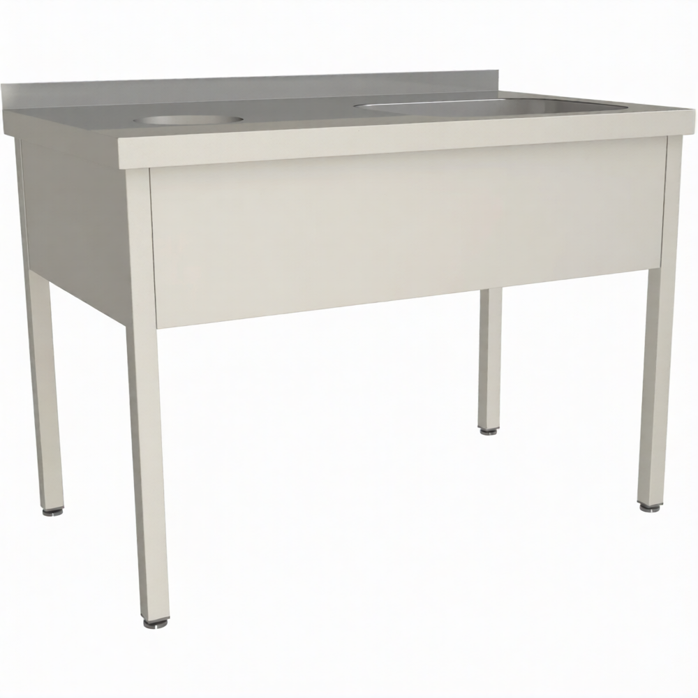 Стол для сбора пищевых отходов с ванной СПОВЦ/1-13/7-БО-П предназначен для применения на предприятиях общественного питания любого формата, пищевых производствах и пищеблоках.