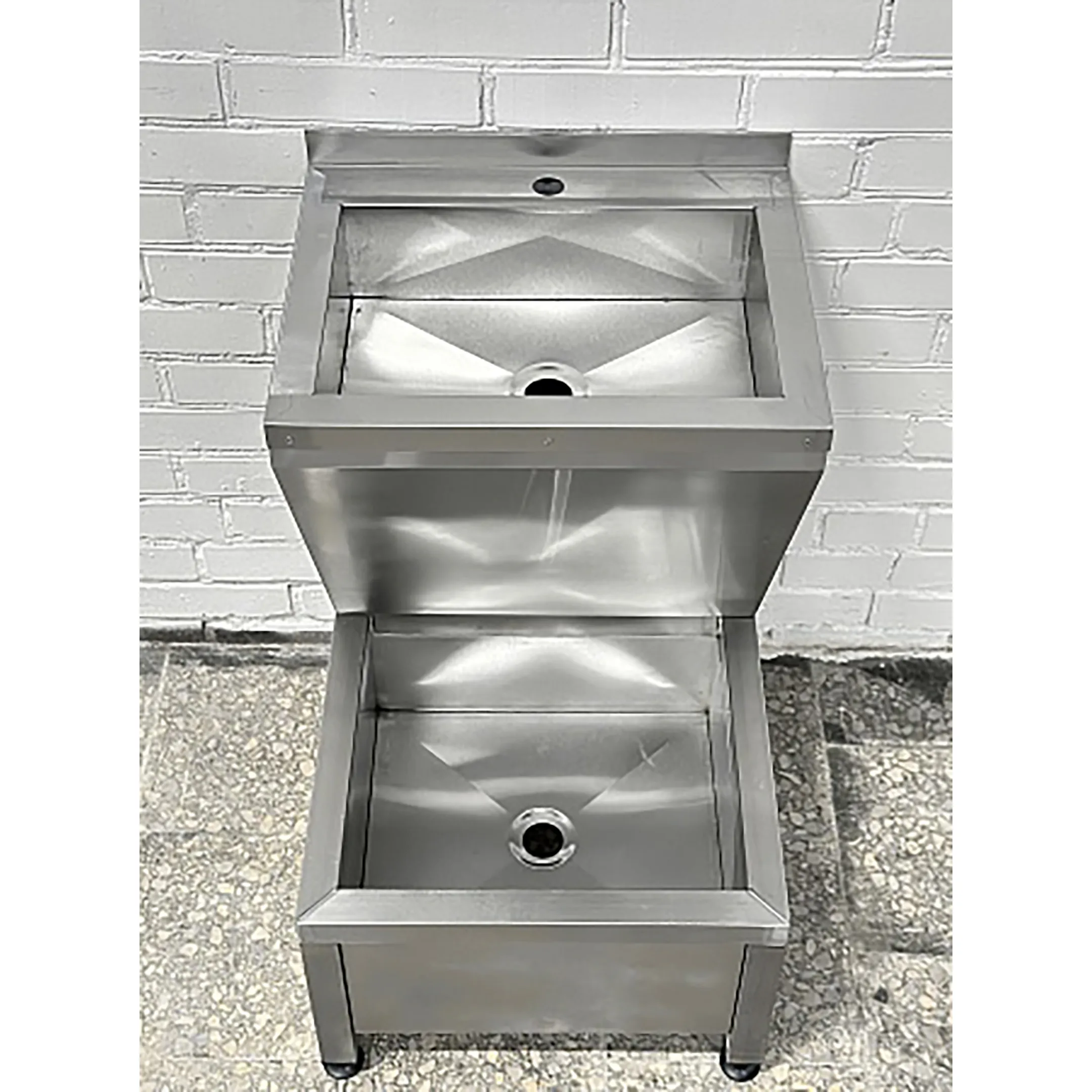 • Две сварные ёмкости из нержавеющей стали марки AISI 430, ванна нижняя 440х370х160 мм, верхняя мойка 400х350х125 мм;