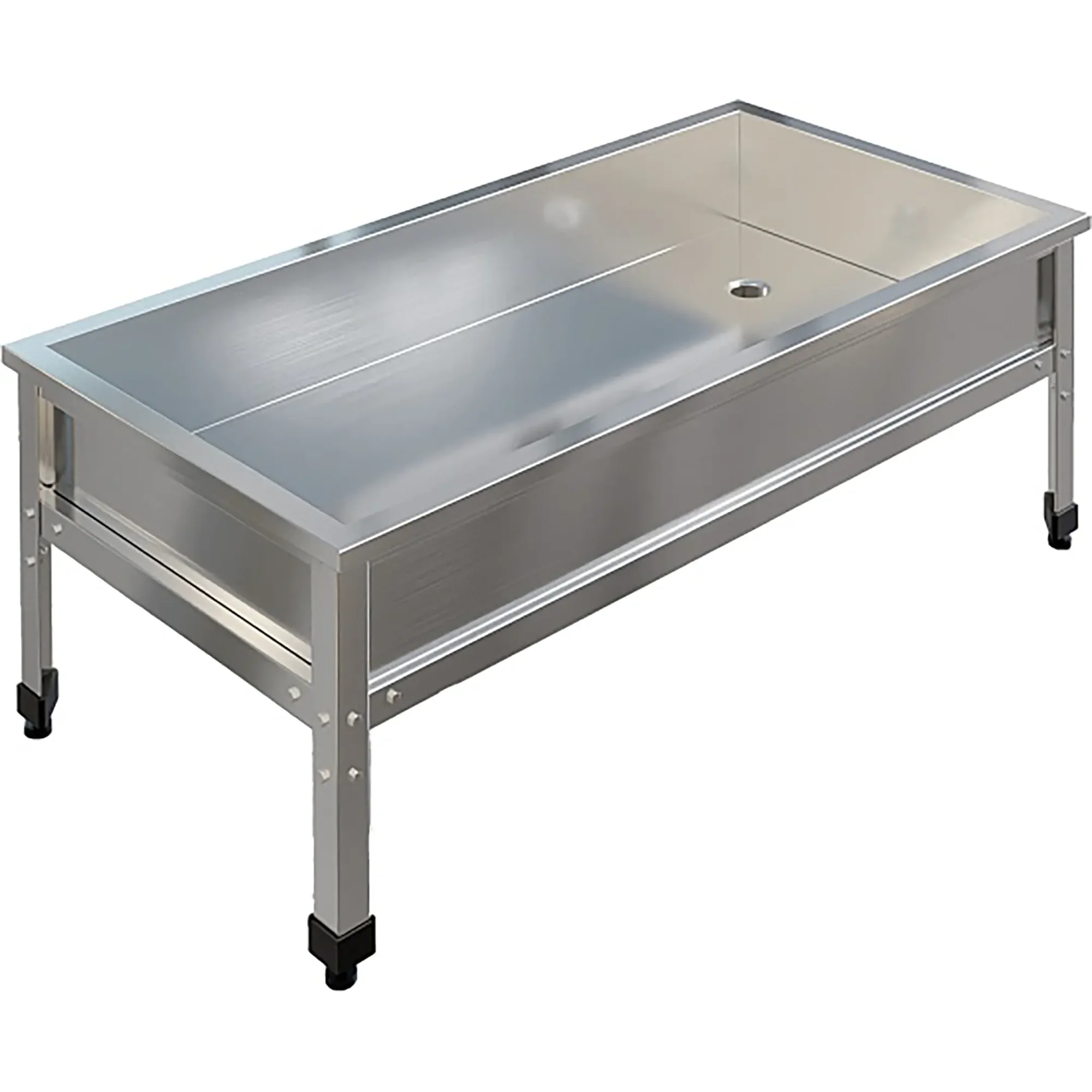 Ванна моечная низкая ВМСН-12/7/4-ЭН разработана для применения в производственных и моечных отделениях предприятий общепита и торговли различного формата, пищевых производств и пищеблоков для мытья и дезинфекции уборочного инвентаря, посуды и кухонных принадлежностей.
