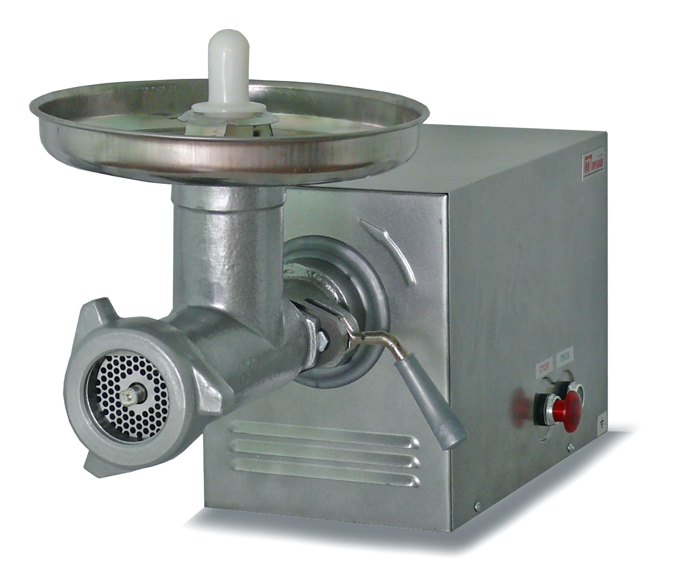 Высокопроизводительная мясорубка ММ используется в комплекте с универсальной кухонной машиной Торгмаш на средних и крупных предприятиях общественного питания.