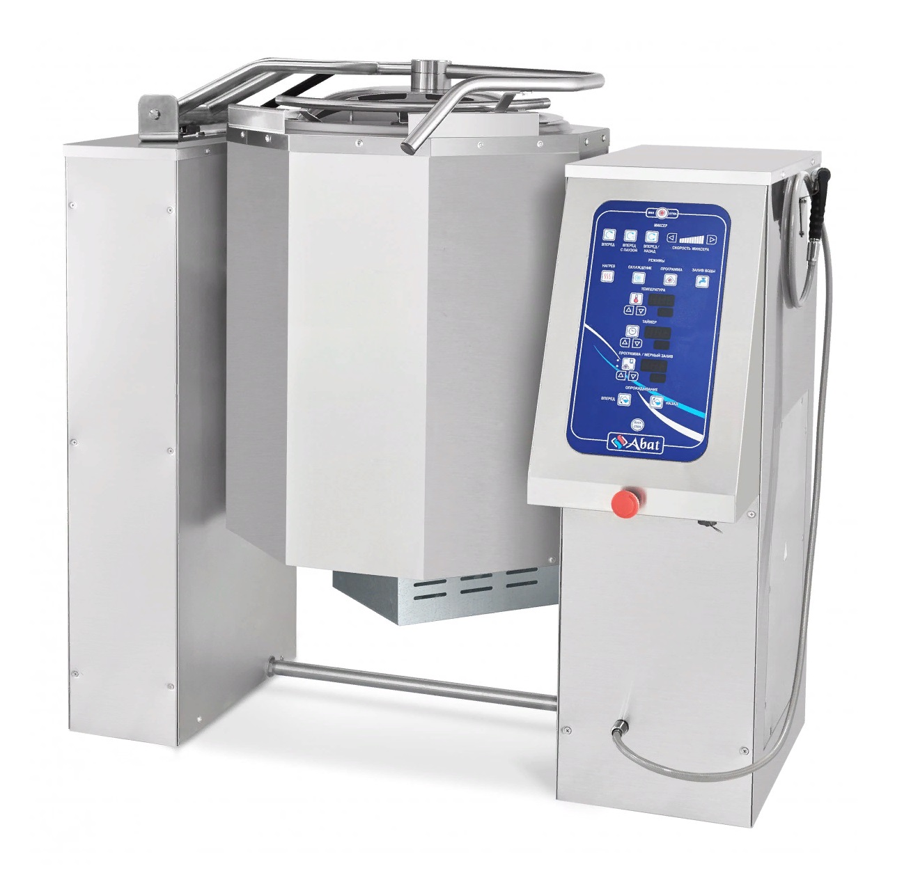 Мощность нагрева регулируется пультом программного управления в диапазоне от 20 до 100 °С. При отсутствии воды в пароводяной рубашке нагрев автоматически отключается. Котел оснащен автоматическим приводом опрокидывания.
