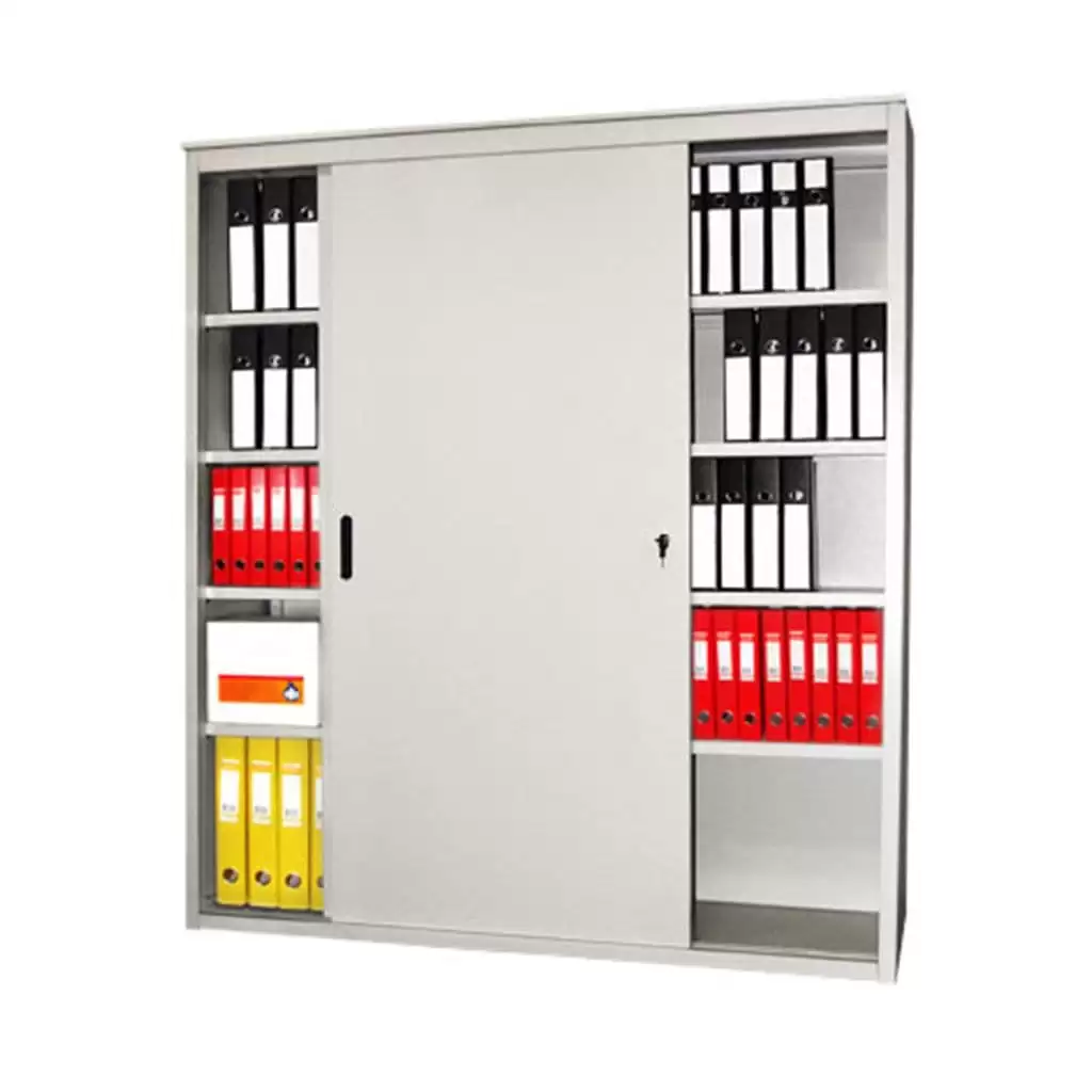 - Эргономичный доступ и современный дизайн — раздвижные двери обеспечивают полный обзор и удобный доступ ко всему содержимому. Строгий и лаконичный дизайн делает шкаф уместным в любом современном деловом интерьере, от офиса open-space до отдельного кабинета.
