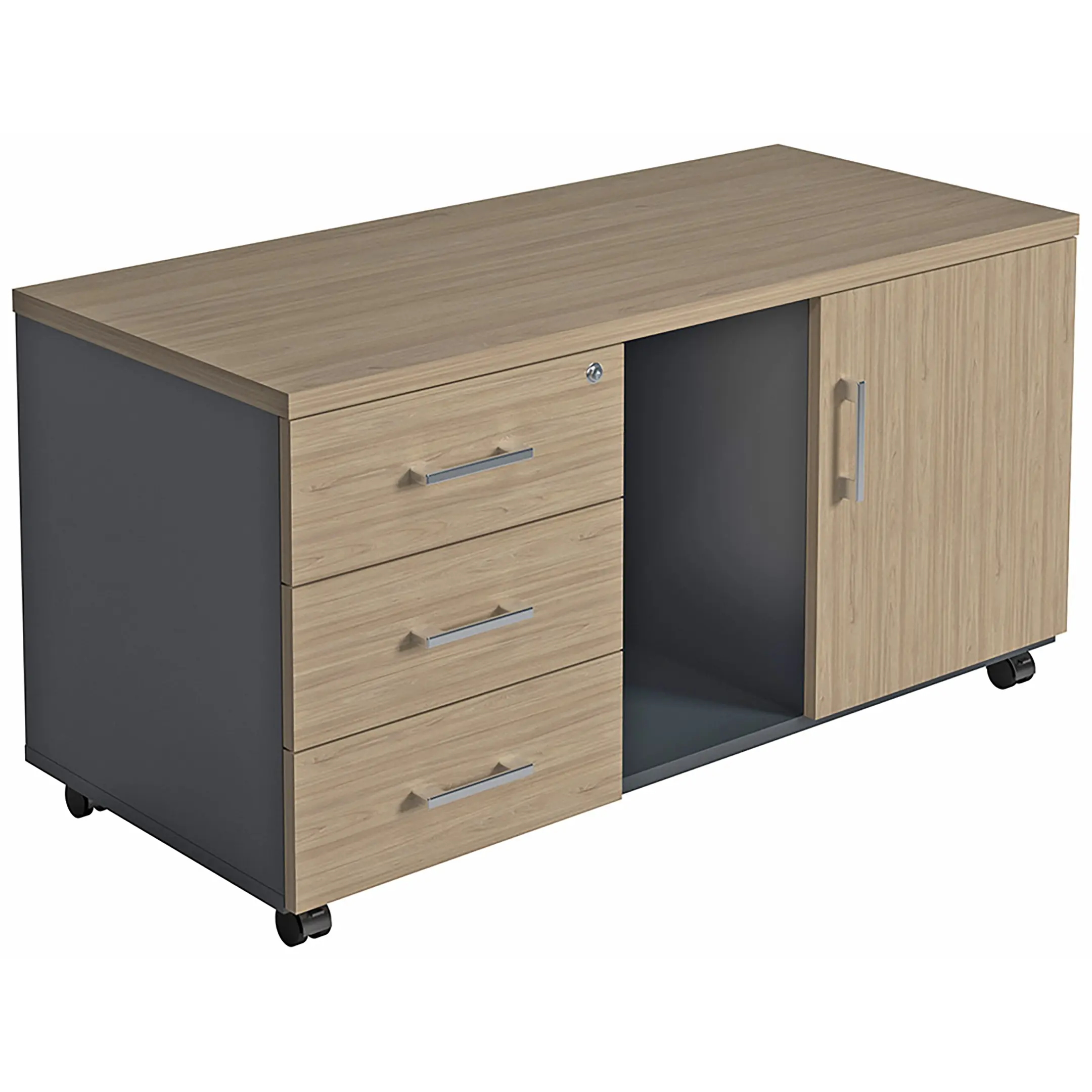 Тумба для оргтехники NPW-410 вяз натуральный/антрацит предназначена для установки в офисных и других помещениях. Оптимально подходит для установки оргтехники и хранения расходников к ней.
