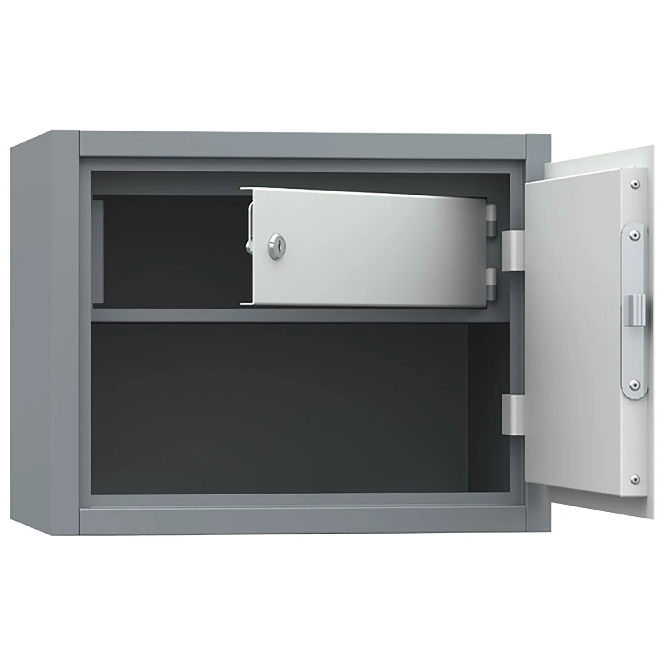 • Дверь шкафа имеет усиленную конструкцию. Безопасность содержимого обеспечивают замок сувальдного типа (3 ключа в комплекте);