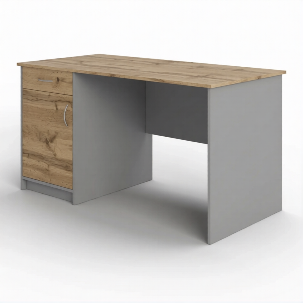 Стол рабочий СрТ-12 (1600х700х750) с тумбой (корпус ЛДСП серый, столешница ЛДСП дуб вотан) предназначен для оснащения кабинета врача в медицинских учреждениях, кабинетов лабораторий.