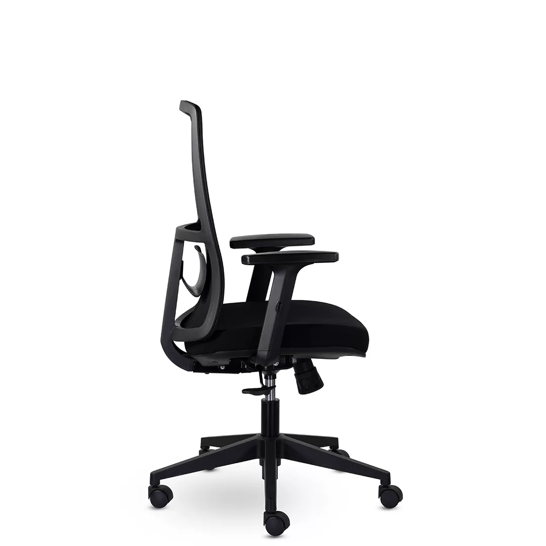 - Универсальный дизайн — чёрный пластиковый каркас придаёт креслу строгий и нейтральный внешний вид, подходящий для офисов любого стиля.