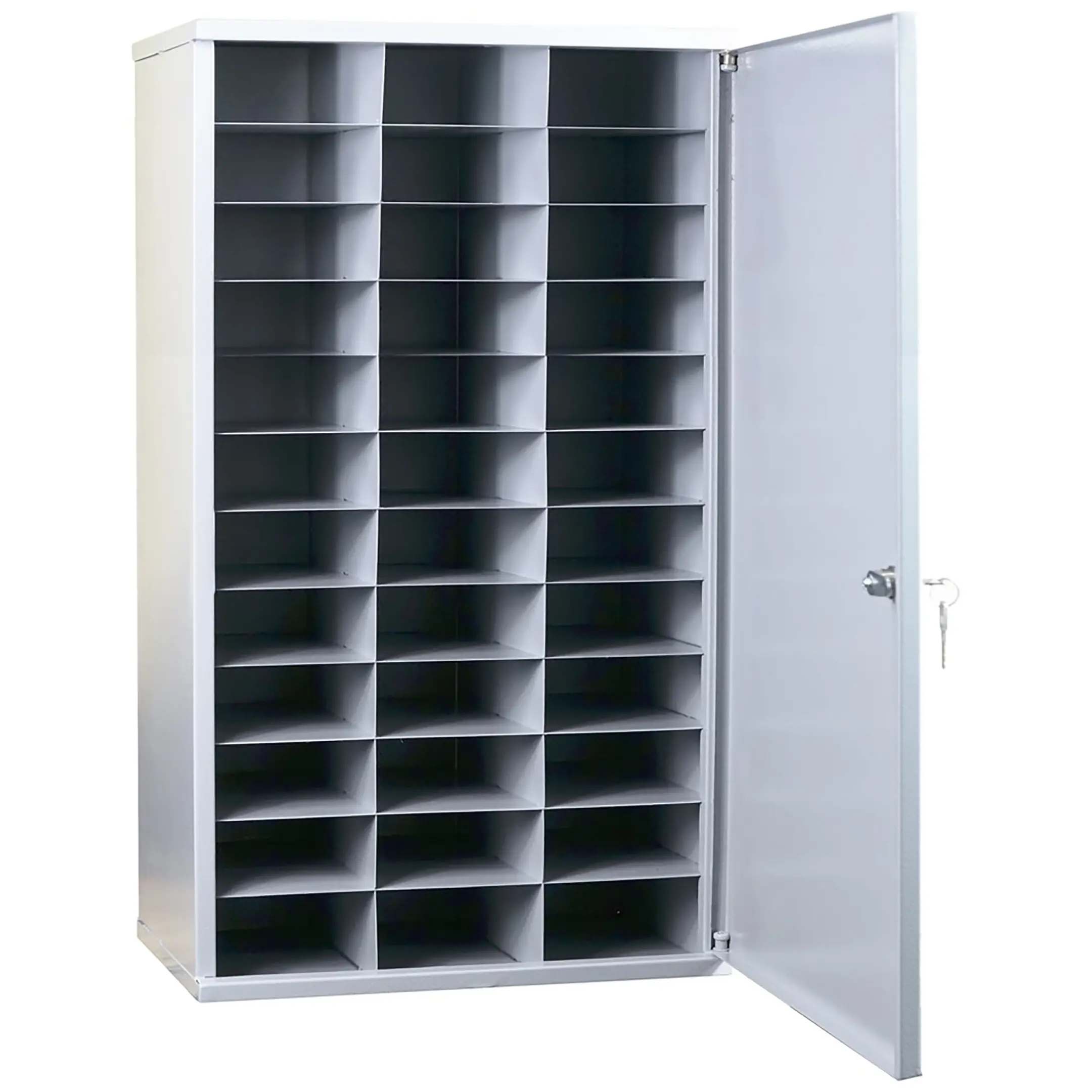 - Повышенная безопасность и защита от краж — каждая ячейка оборудована надежным замком с ключом, а общая конструкция шкафа выполнена из прочного металла, что обеспечивает максимальную защиту устройств от несанкционированного доступа и хищения.