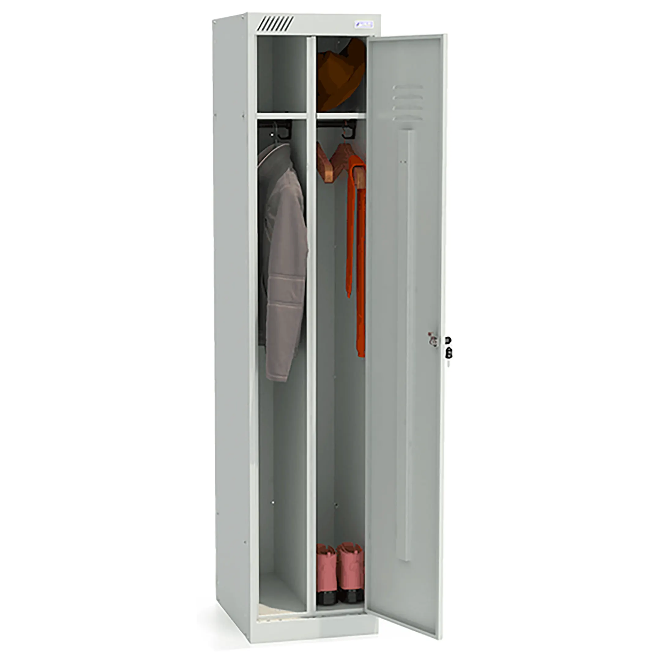 Шкаф для одежды ШРК 21-400 предназначен для хранения сменной одежды в офисных, производственных, спортивных помещениях, а также для организации камер хранения в магазинах и супермаркетах.