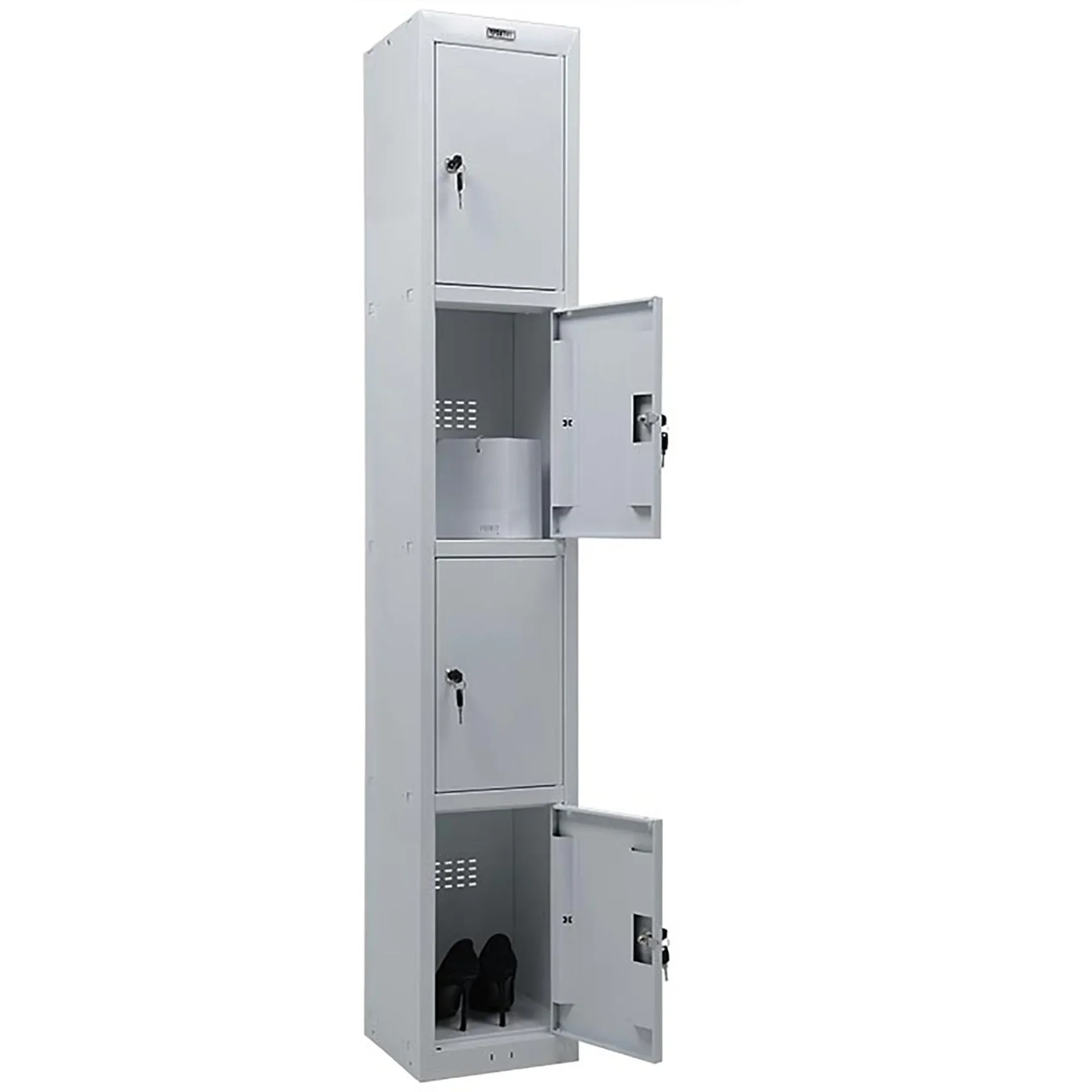 Шкаф для раздевалок ПРАКТИК усиленный ML 14-30x30 предназначен для хранения одежды в производственных, спортивных и других помещениях, хоз. инвентаря, а также для организации камер хранения.