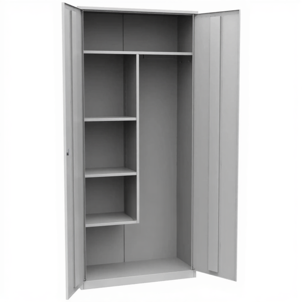 - Удобство использования в школьной инфраструктуре — шкаф имеет оптимальные габариты для размещения в подсобных помещениях, санузлах, гардеробных и других служебных зонах учебных учреждений, обеспечивая при этом достаточный объем для хранения всего необходимого инвентаря для поддержания чистоты в школе.