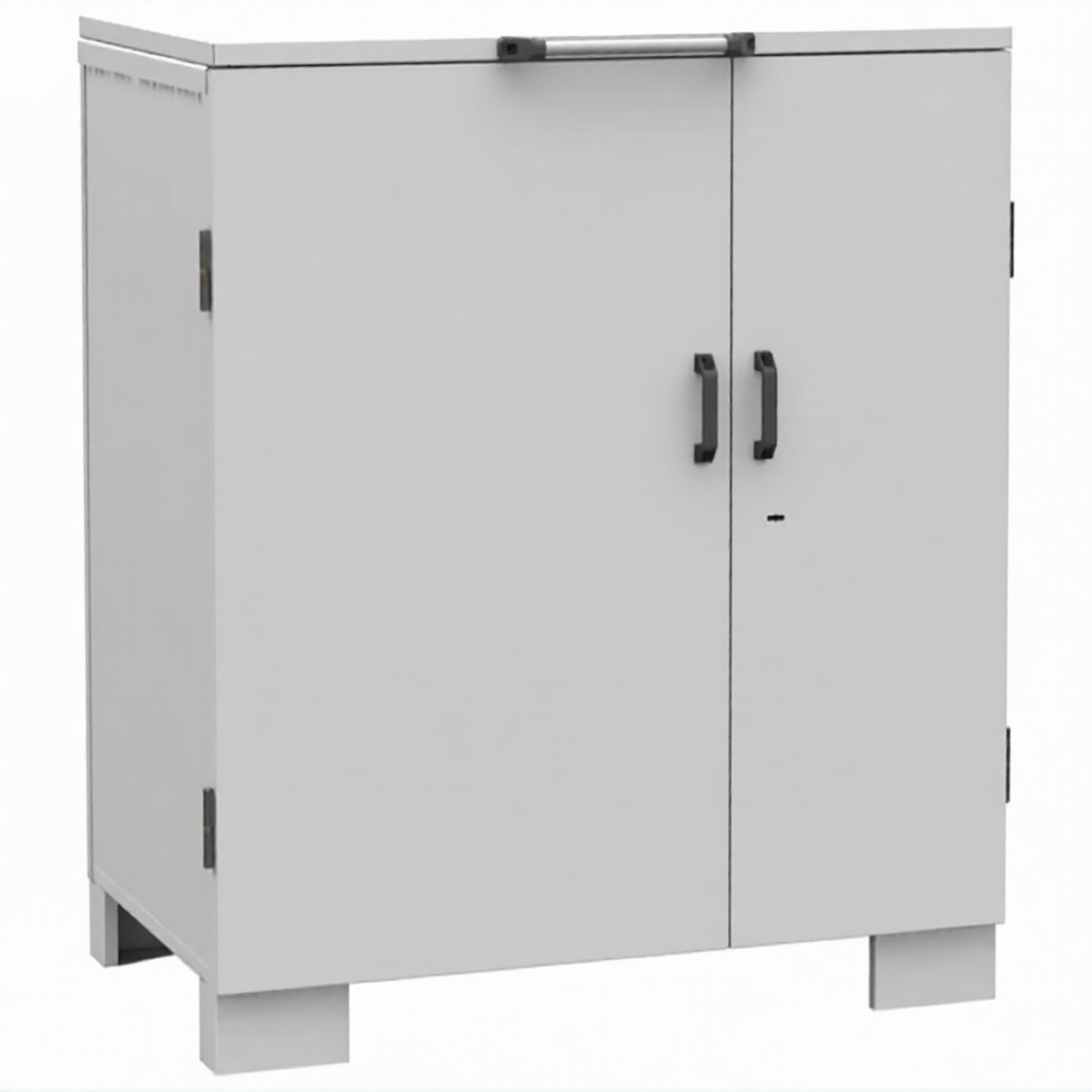 - Защита от несанкционированного доступа и внешних воздействий — запирающаяся металлическая конструкция надежно защищает содержимое от кражи, а также от пыли, грязи и атмосферных осадков (при установке под навесом или внутри помещения).